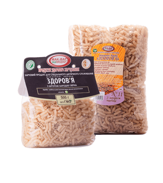 Підприємством “Мак-Вар Екопродукт” розроблена і затверджена оригінальна рецептура цілої лінійки макаронів “Здоров’я” з борошна цельносмолотого зерна грубого помелу і рослинною клітковиною. Завдяки цьому макарони придбали справді унікальні властивості!